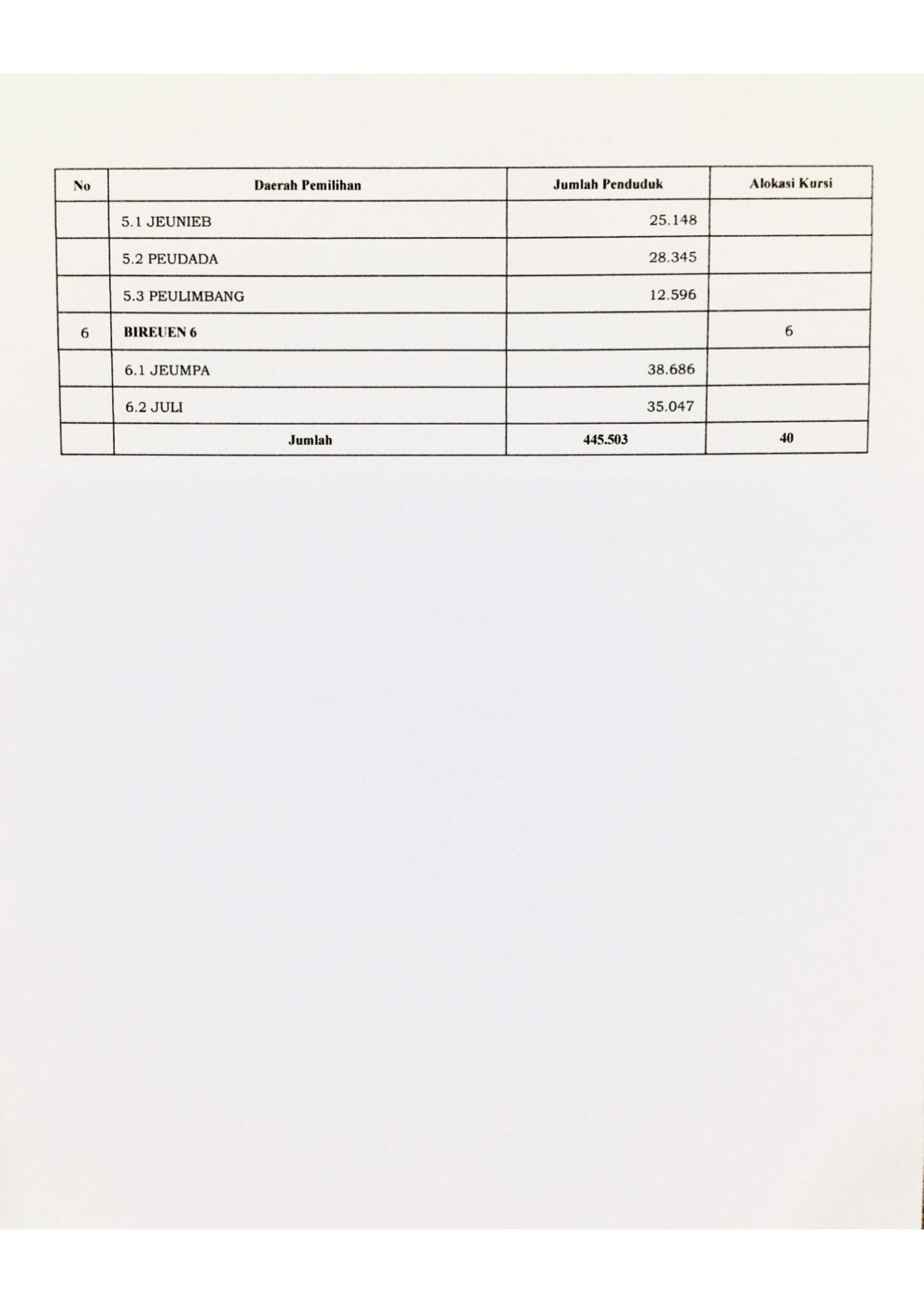 Pengumuman Penataan Daerah Pemilihan Anggota DPRK Bireuen Untuk Pemilu Tahun 2024