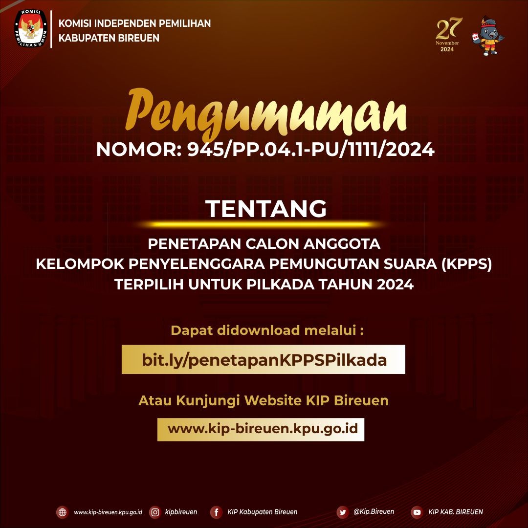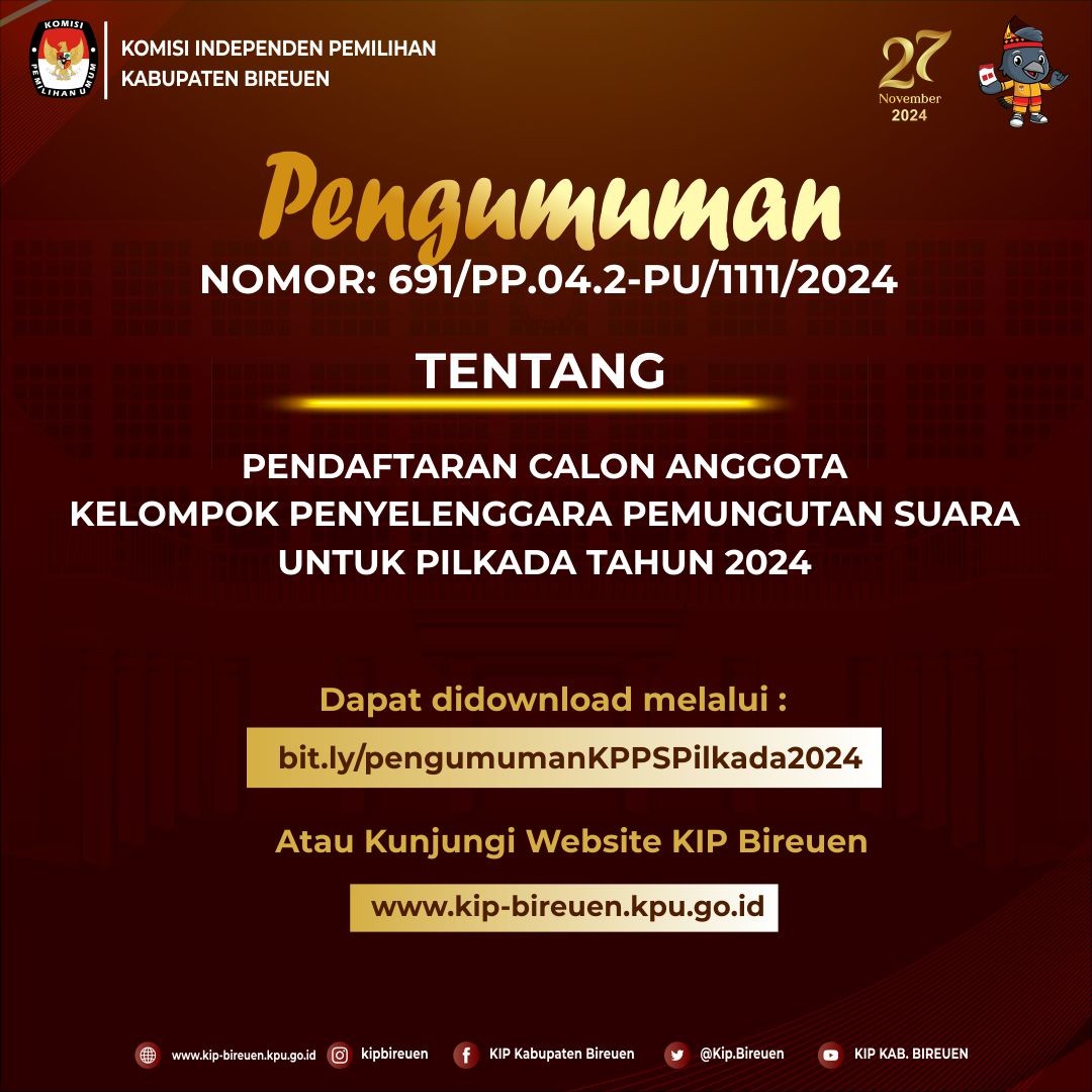 #TemanPemilih berikut kami bagikan pengumuman tentang penetapan calon Anggota Kelompok Penyelenggara Pemungutan Suara (KPPS) Terpilih untuk Pilkada Tahun 2024 Klik DISINI