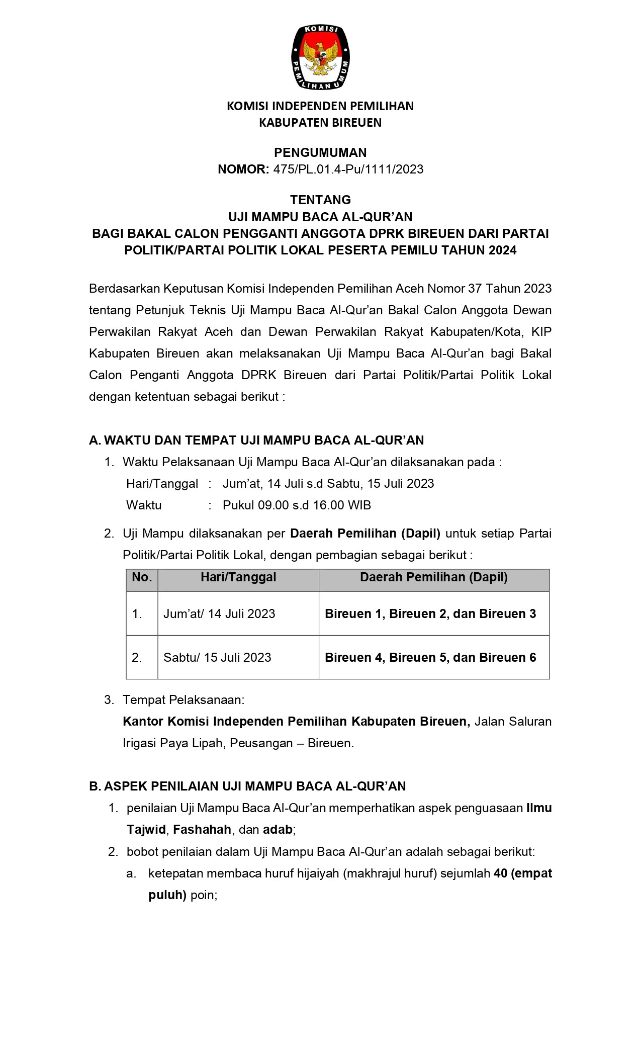 Komisi Independen Pemilihan (KIP) Kabupaten Bireuen melakukan sosialisasi dan Pendidikan Pemilih untuk Pemilu Serentak Tahun 2024 pada hari Kamis tanggal 22 Juni 2023 bertempat di Bale Beton Pesantren Mudi Mesjid Raya Samalanga Gampong Mideun Jok.
